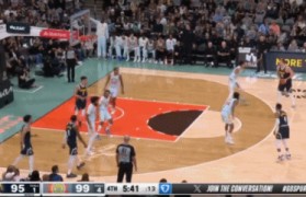 1月5日讯 NBA常规赛,掘金和马刺的比赛正在进行中。威少在篮下没有任何人防守的情况下,上丢一个近距...